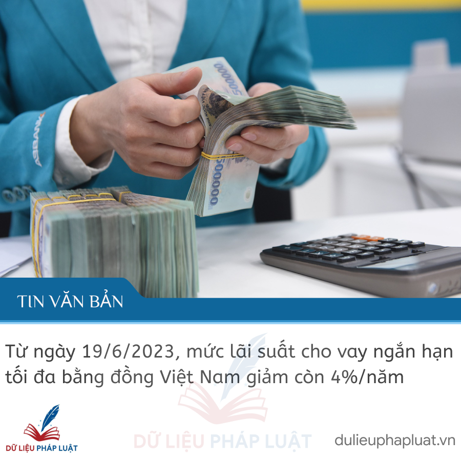 Từ ngày 19/6/2023, mức lãi suất cho vay ngắn hạn tối đa bằng đồng Việt Nam giảm còn 4%/năm