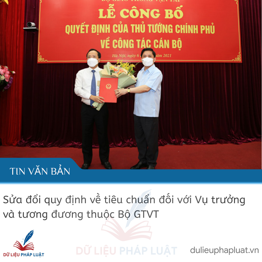 Ngày 12 tháng 05 năm 2023, Bộ Giao thông Vận tải đã ban hành Quyết định 573/QĐ-BGTVT của Bộ Giao thông Vận tải về việc sửa đổi, bổ sung một số điều của Quy định tiêu chuẩn chức danh lãnh đạo, quản lý các cơ quan, đơn vị trực thuộc Bộ ban hành kèm theo Quyết định 748/QĐ-BGTVT ngày 02/5/2019 của Bộ Giao thông Vận tải.