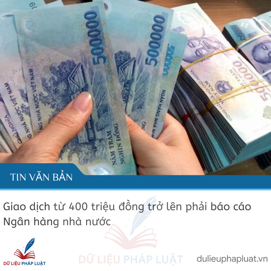 Giao dịch từ 400 triệu đồng trở lên phải báo cáo Ngân hàng nhà nước